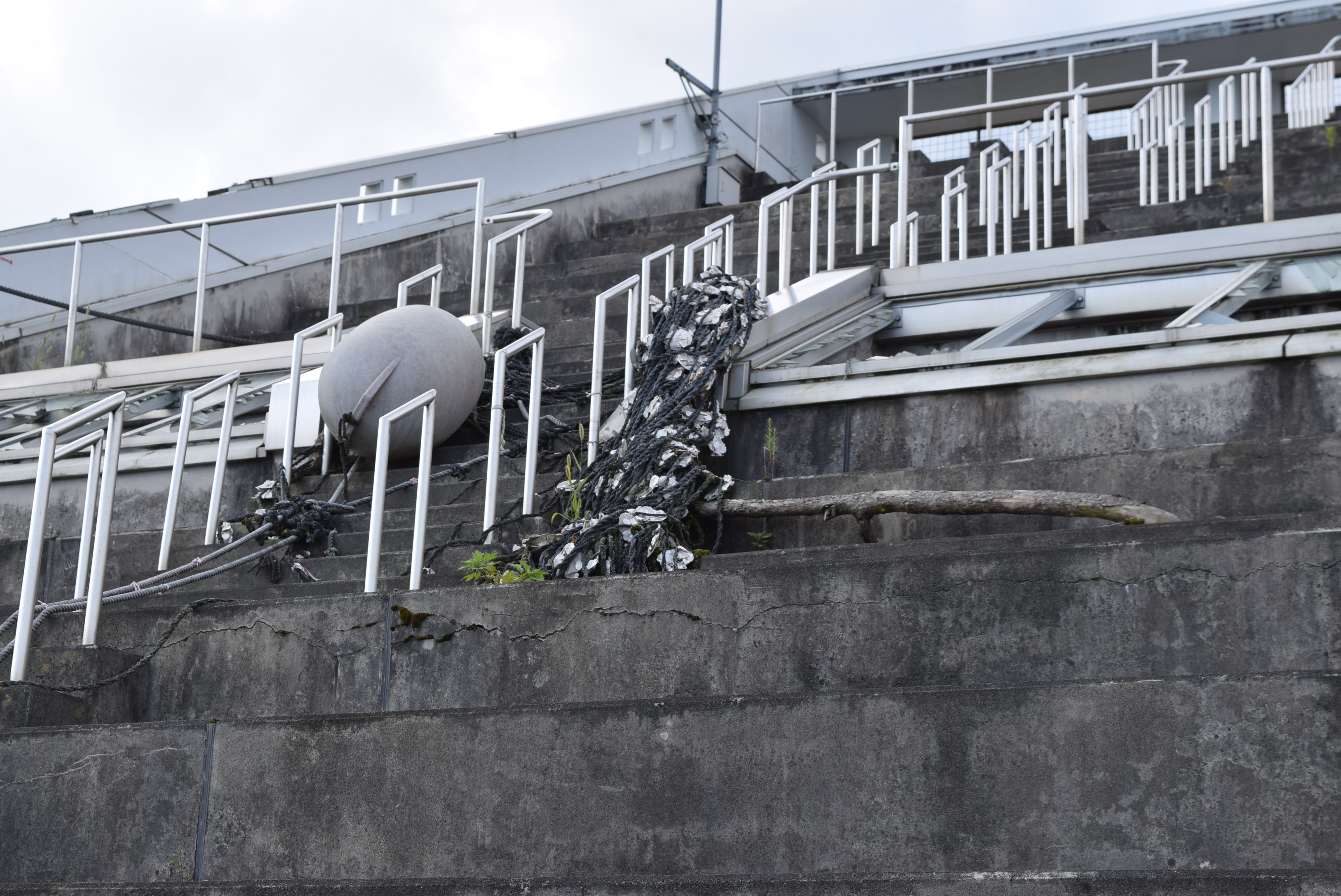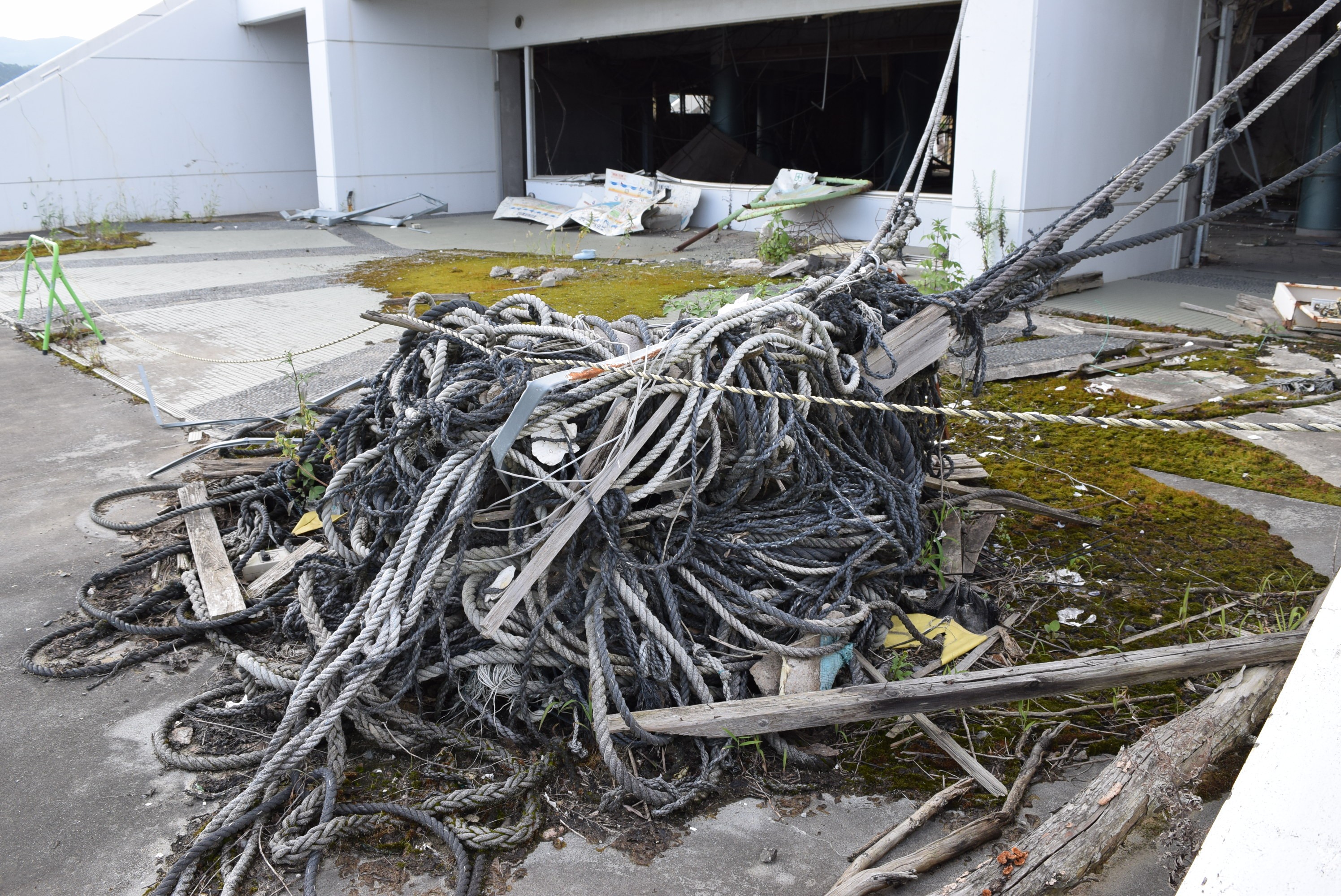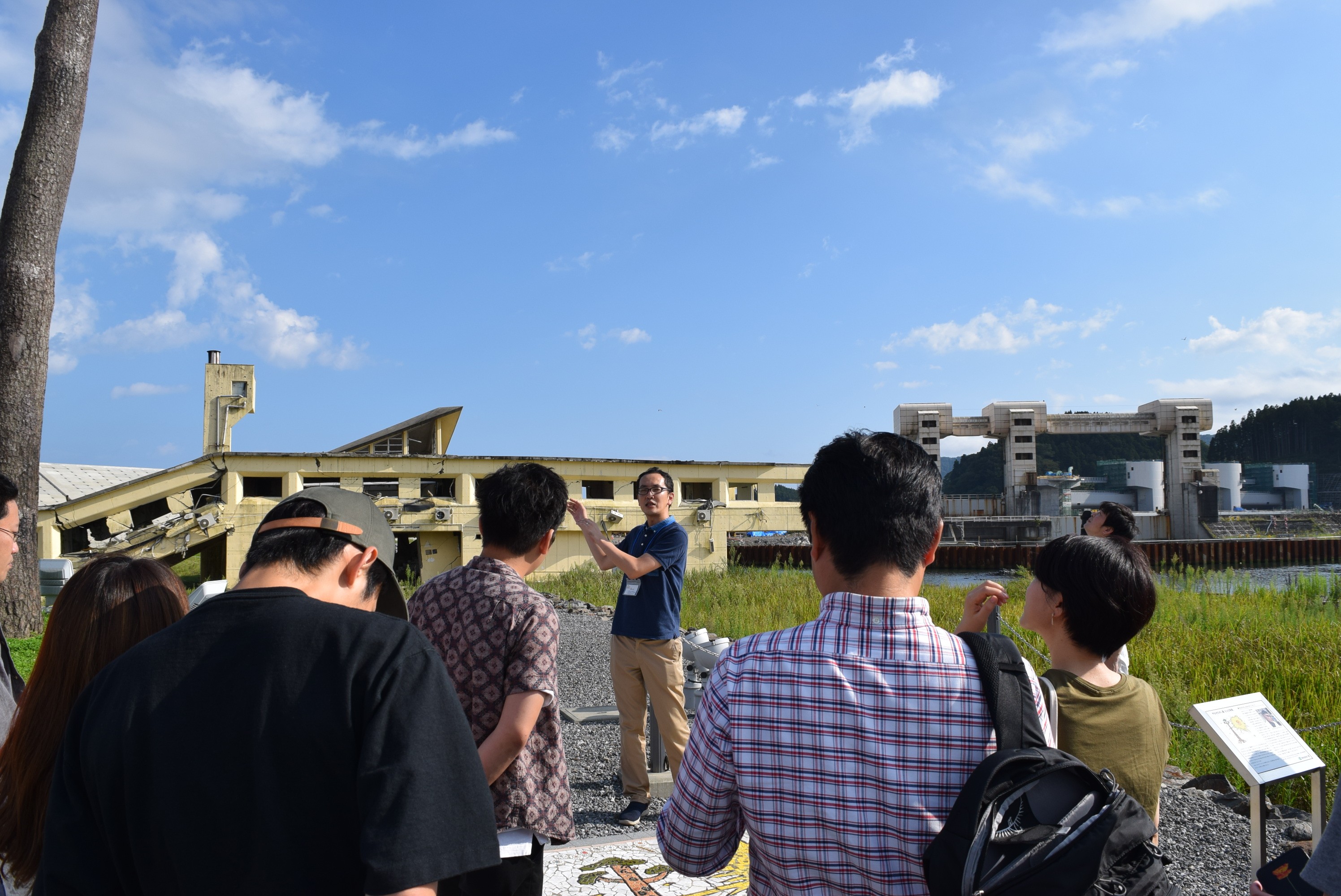 震災当時のままの瓦礫が残った施設内、津波でなぎ倒された鉄塔や、沖にあったはずの打ち上げられた牡蠣の養殖網。参加された皆さん、真剣な眼差しで伊藤さんのお話に耳を傾けていました。