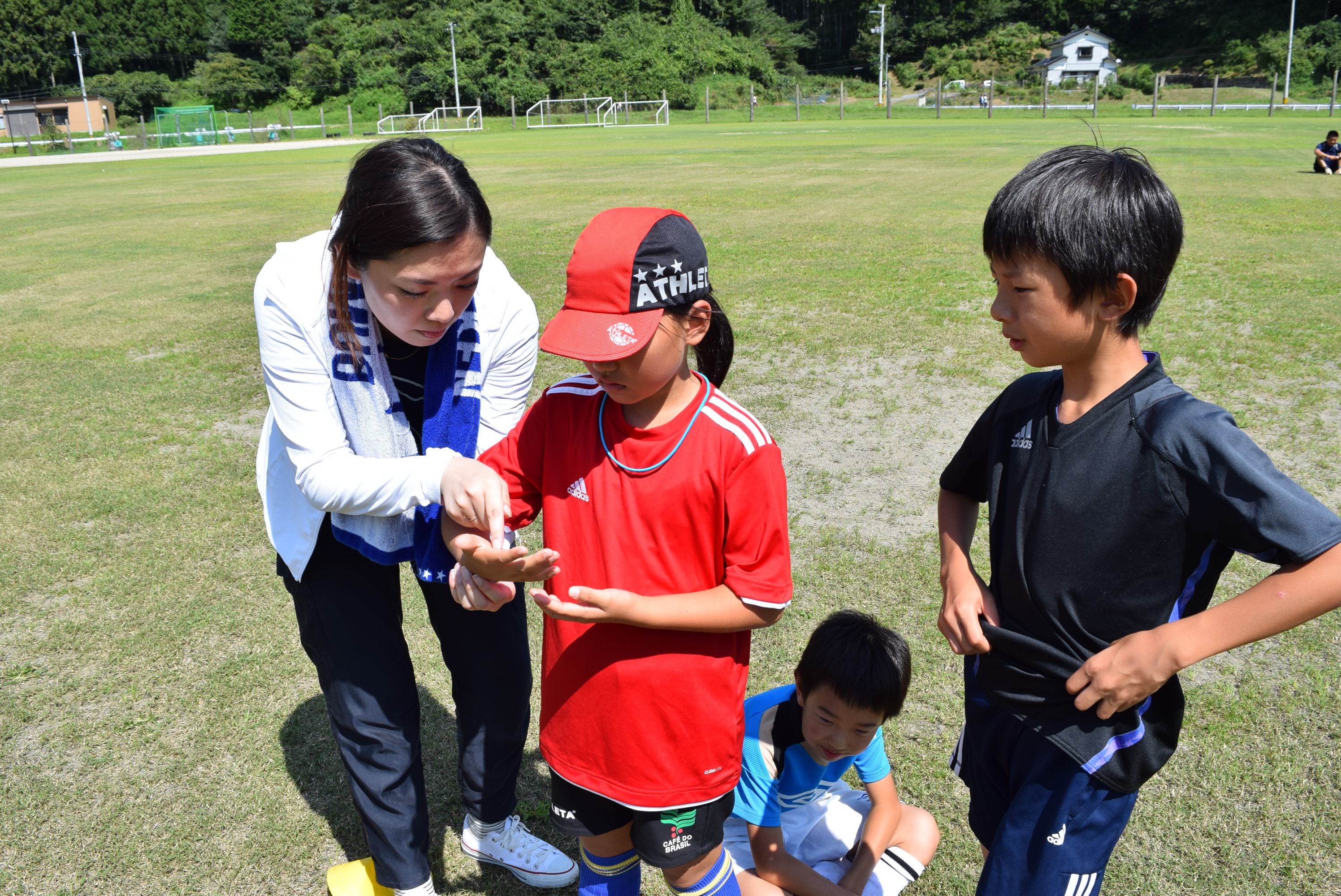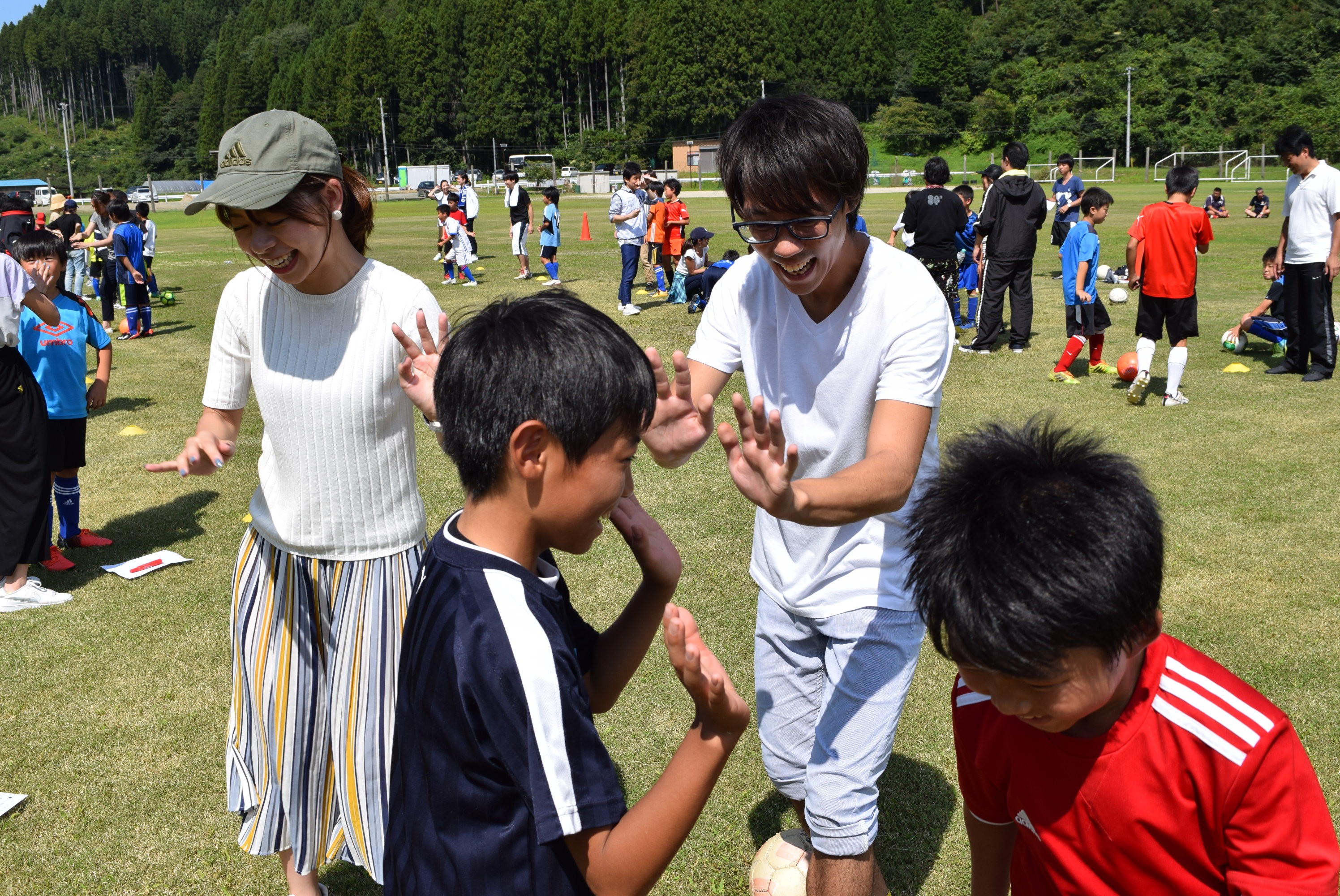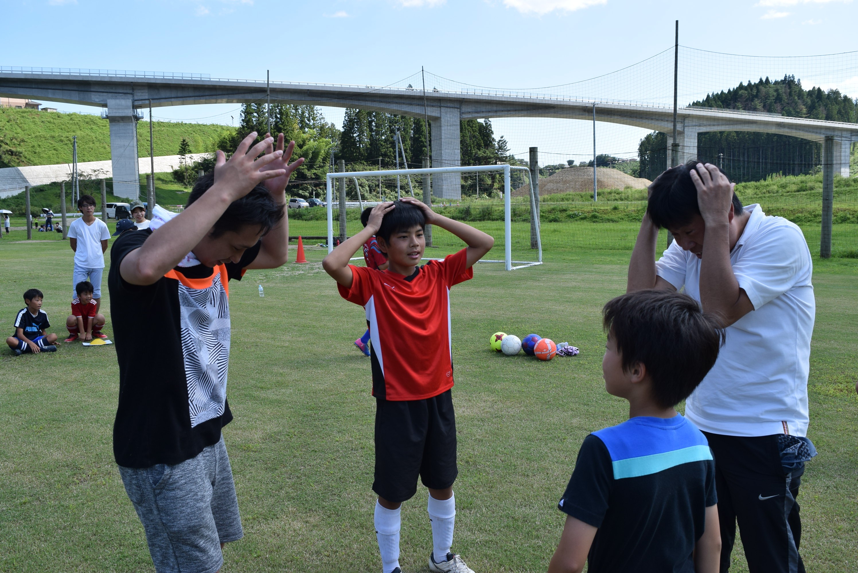 そして、地元の少年サッカーチーム・高田FCの子どもたちとディフェンス・アクションを通じて交流を図ること。