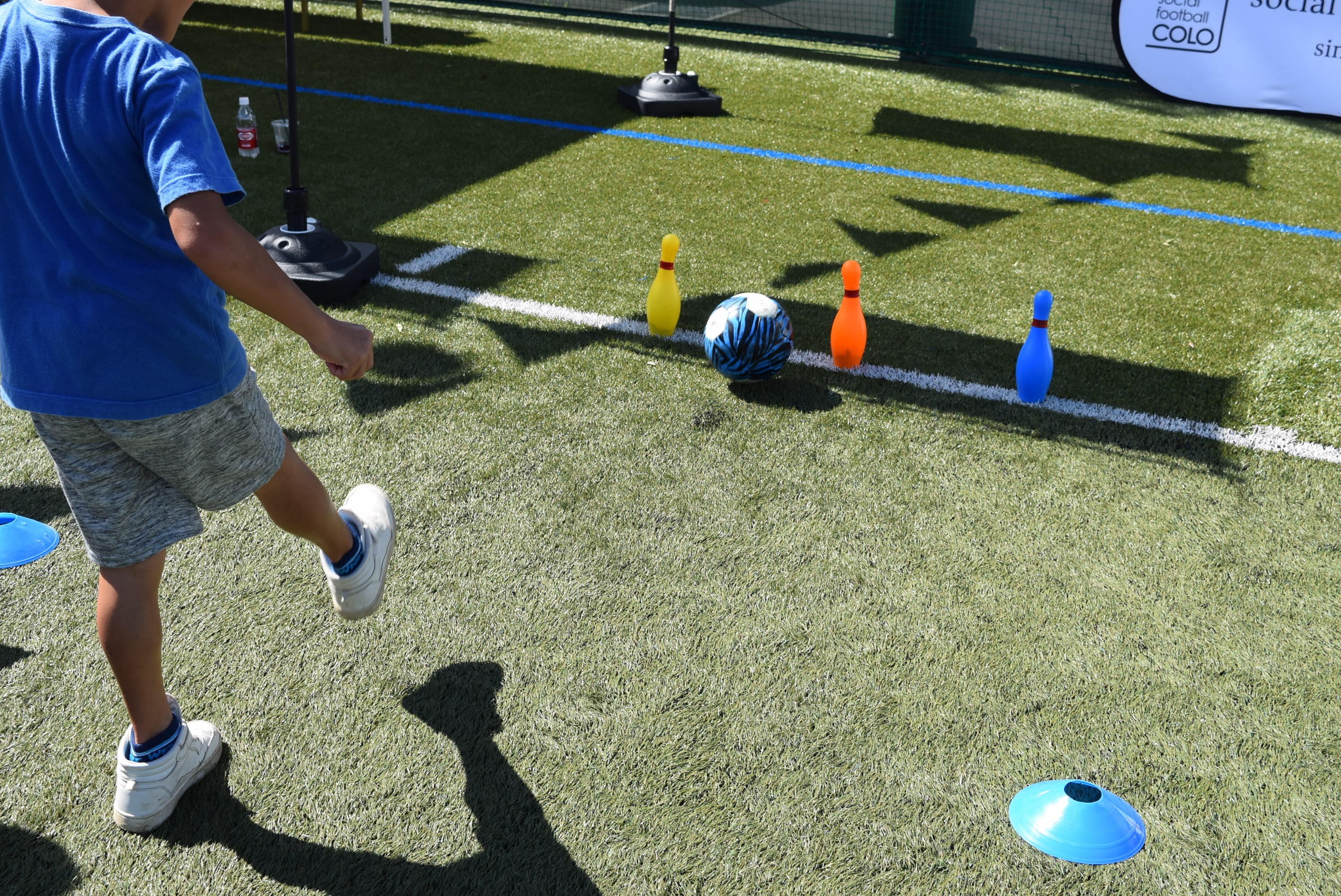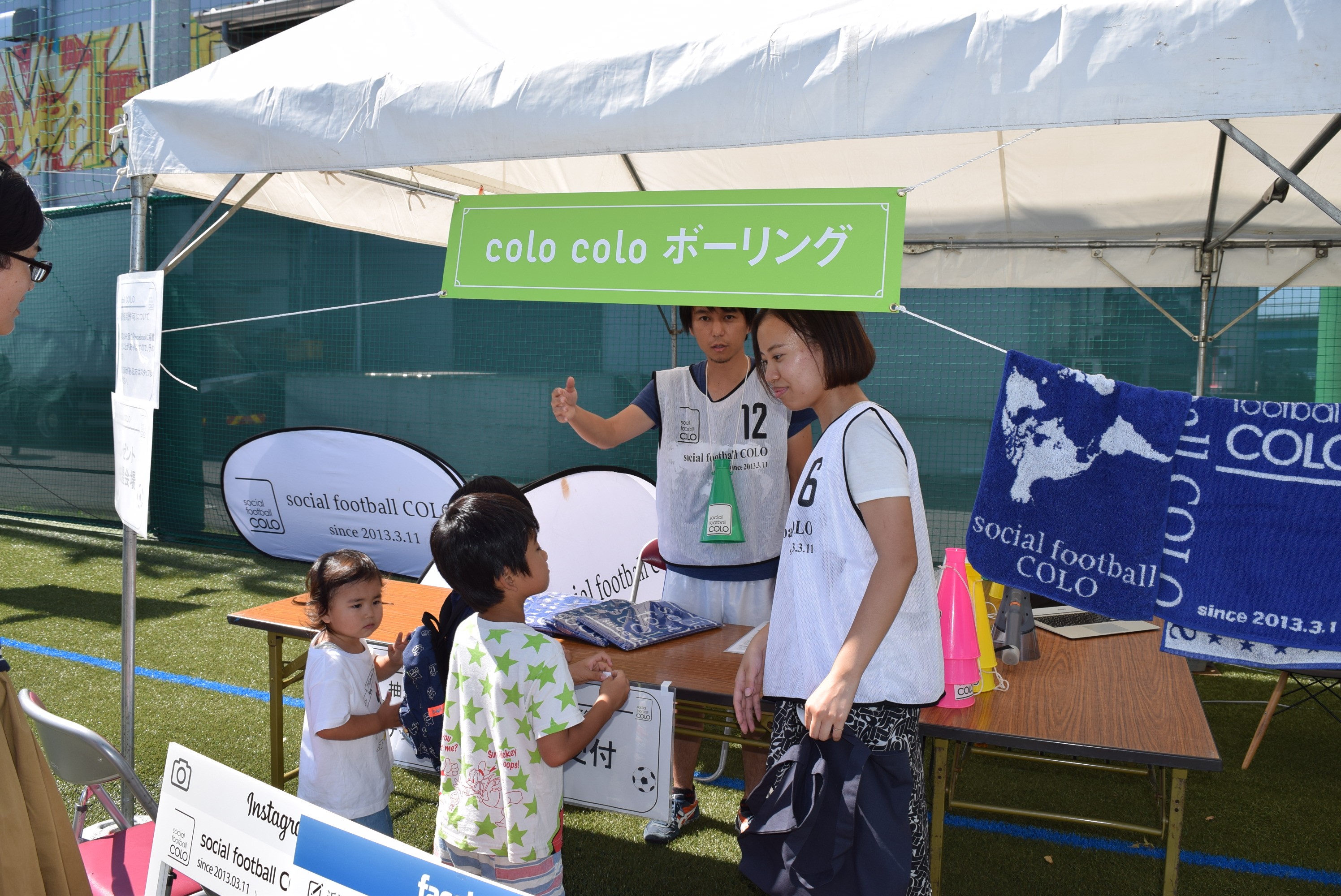 social football COLOでは、木場公園で行なったわんぱく防災フェスタで行なった以来の「colo coloボーリング」を実施しました。