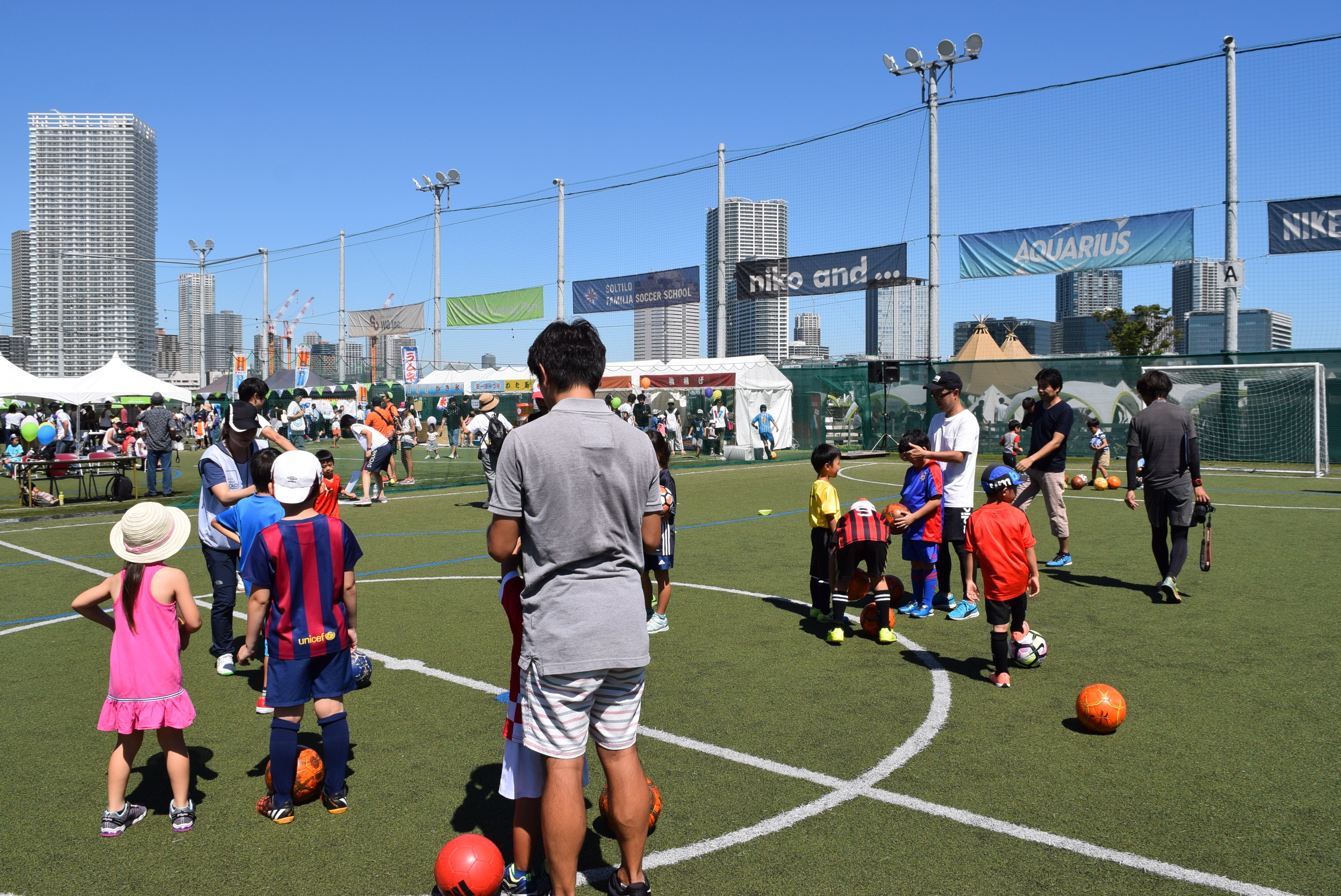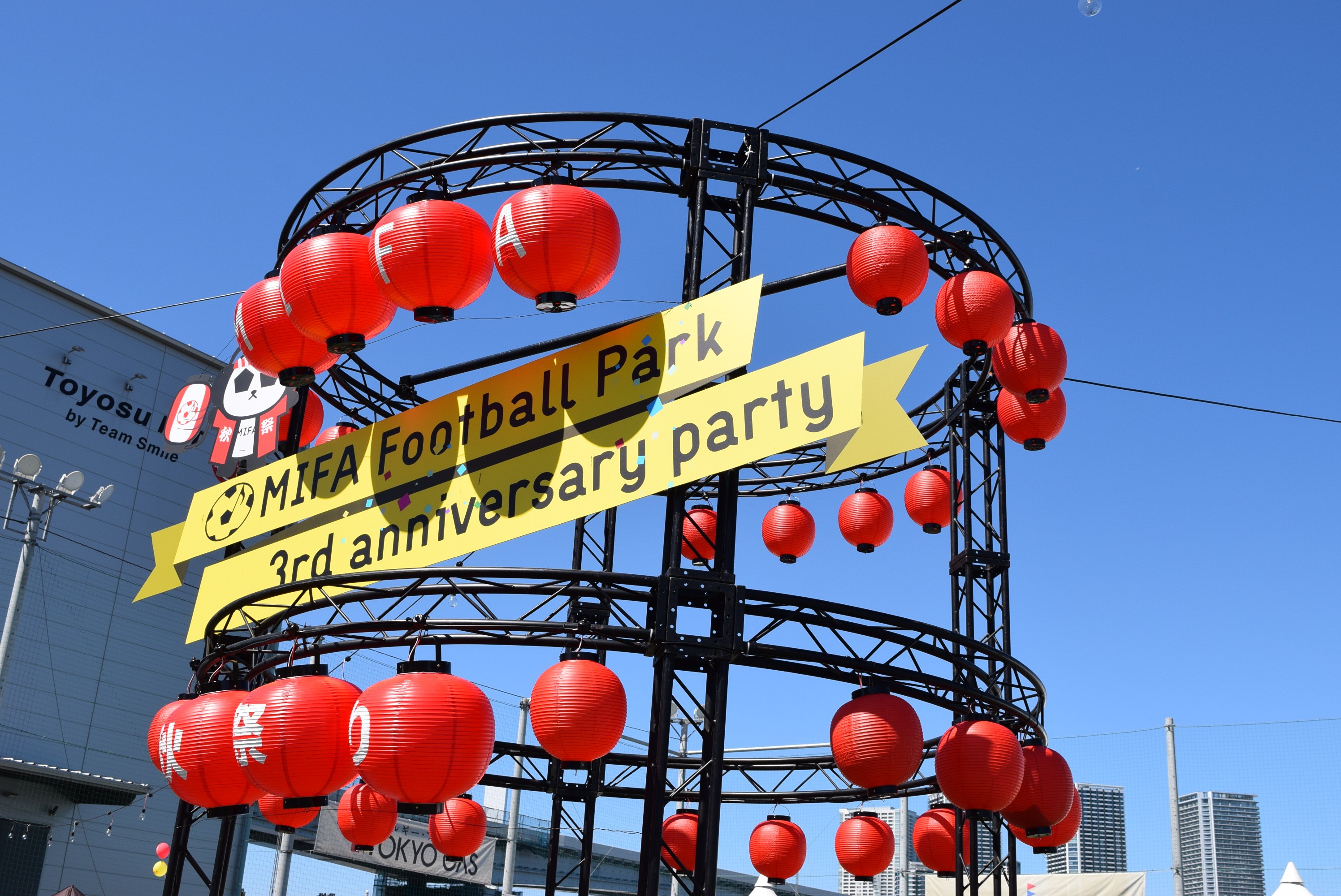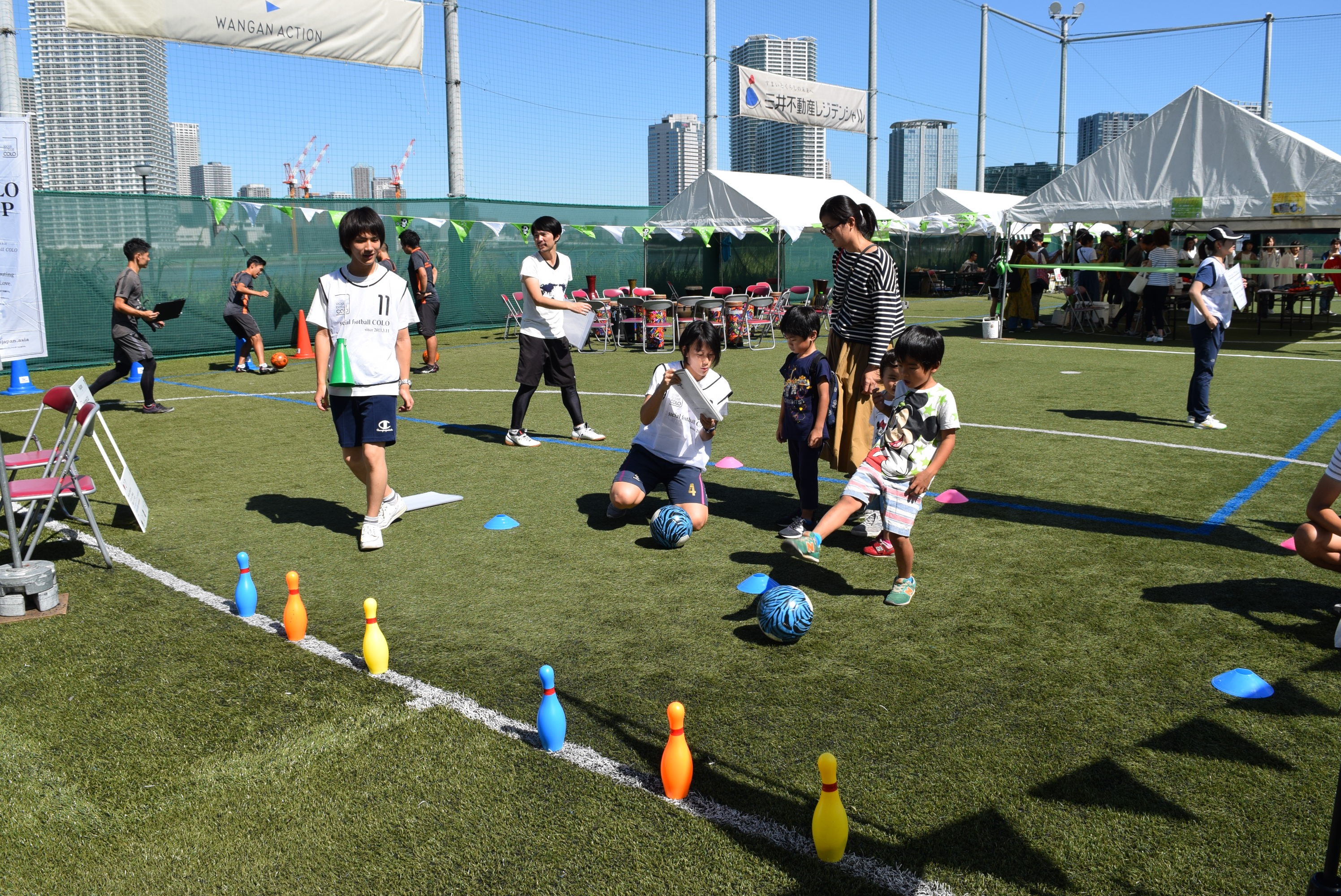 MIFA Football Parkの3周年を記念して開かれた秋祭りイベント。当日は、social football COLO以外にもさまざまな団体・企業が出展し、来場者の方々に、ドリブルタイムトライアルやフリーマーケット、フェイスペイントなど、ワークショップや催し物を提供していました。