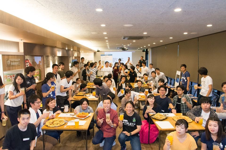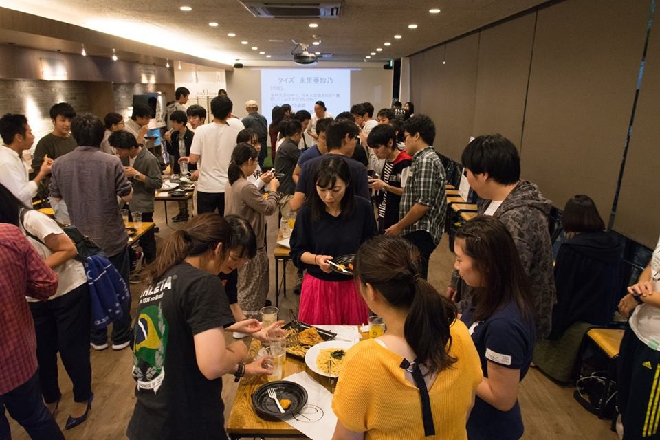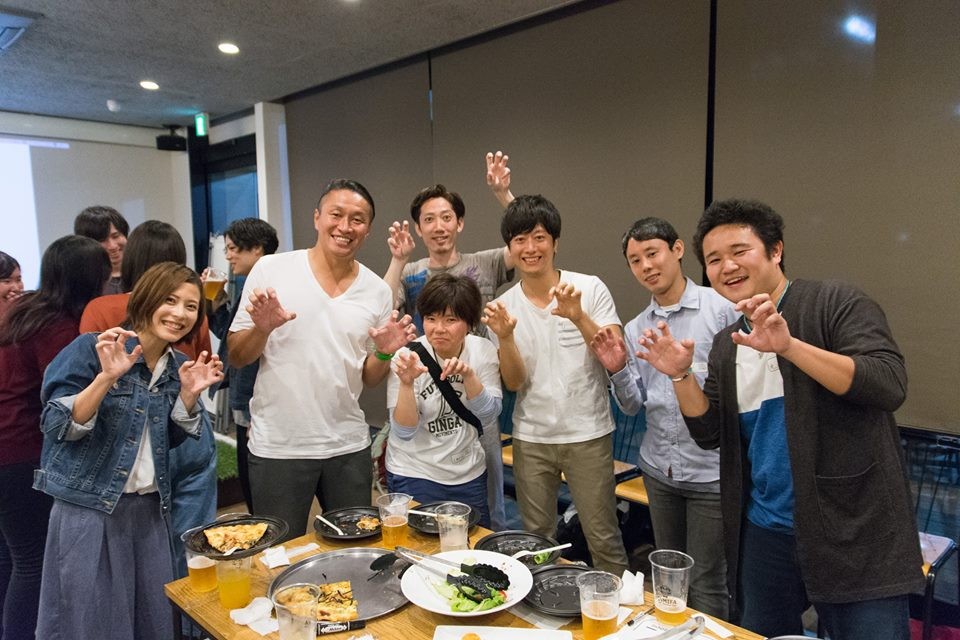 コート隣接の会場にて、サッカーを通してすっかり仲間になったみなさんで懇親会♫