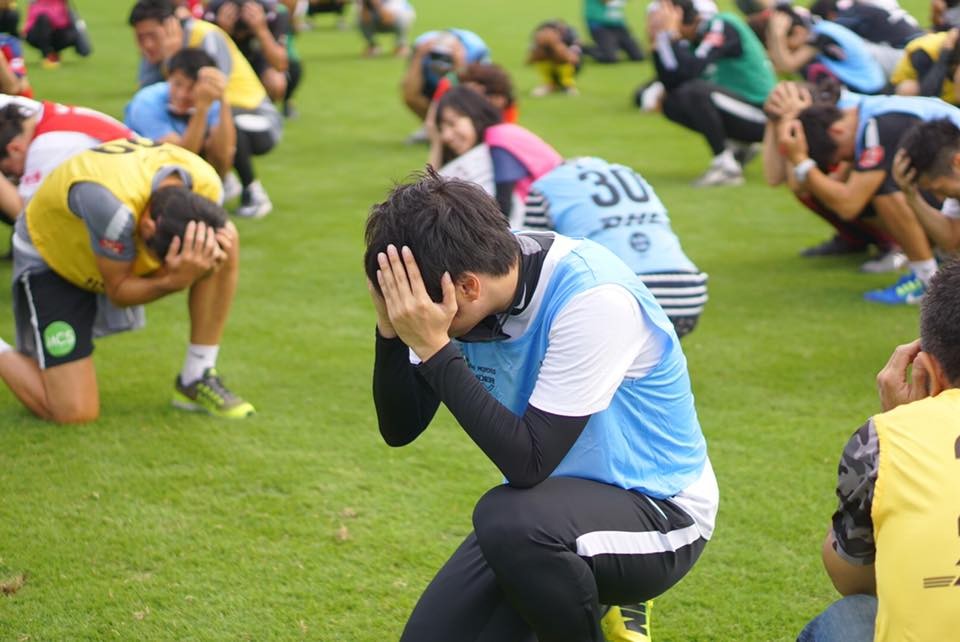 チームごとに分かれ、伝言を伝えていきながら、PKを決めていきます。