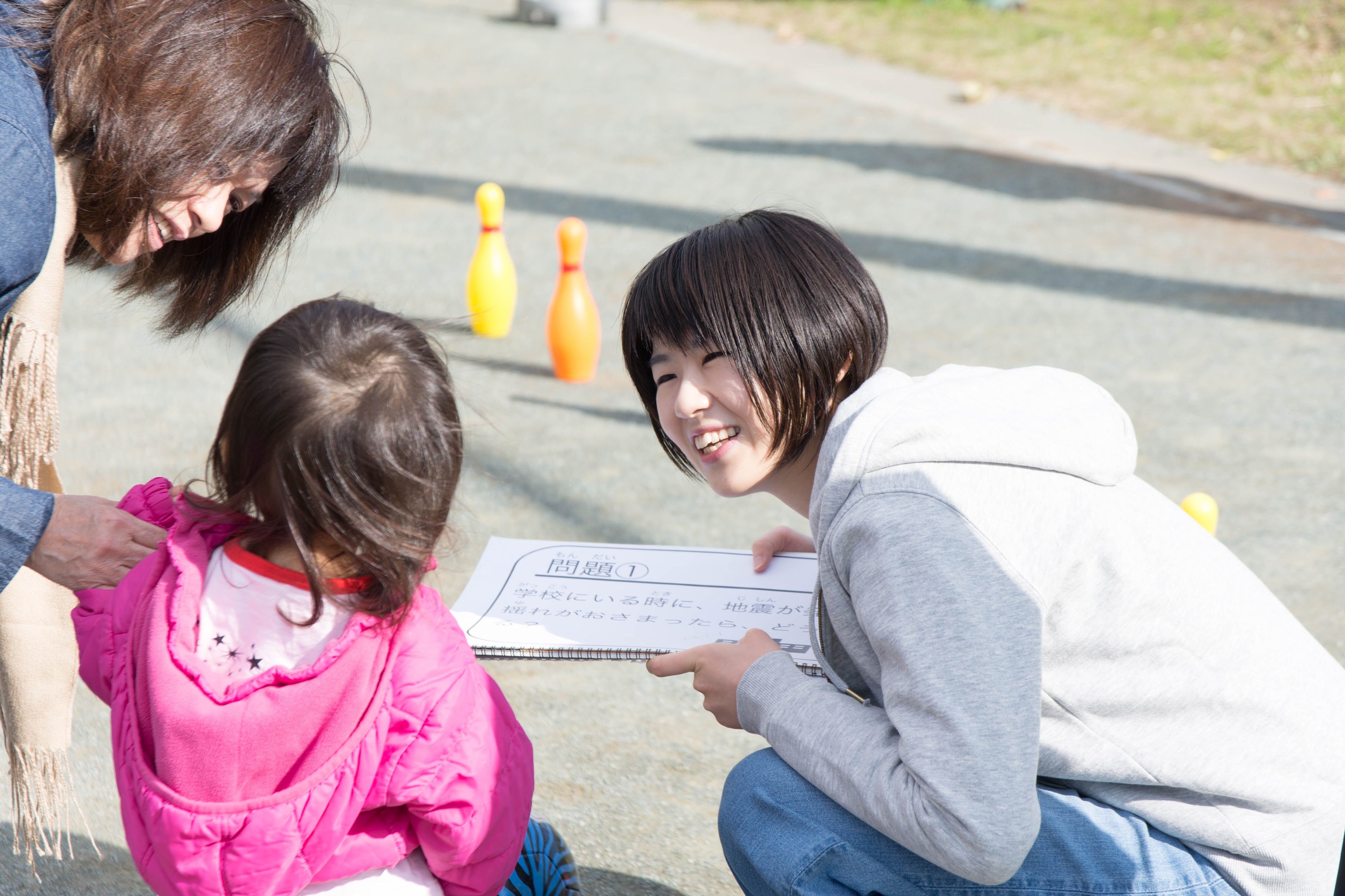 当日実施したディフェンス・アクションは、子どもに大人気の「colo coloボーリング」と防災備蓄品を覚えながらパス練習をする「パス・ストック」です。