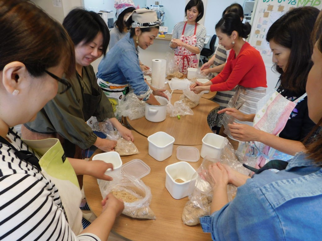 お味噌は手作り。そんなご近所さんが、周りの友達にお味噌作りを教えてほしいと言われることが多いそう。家でやるのは大変だけど「HAMACO:LIVINGならみんなできるかも」と思ってくれたそうです。キッチンもありますからね♪お味噌作りの後は、自家製味噌を使ったお料理でランチしました。