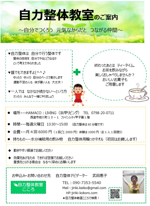 毎週火曜日13:30~15:00 自力整体