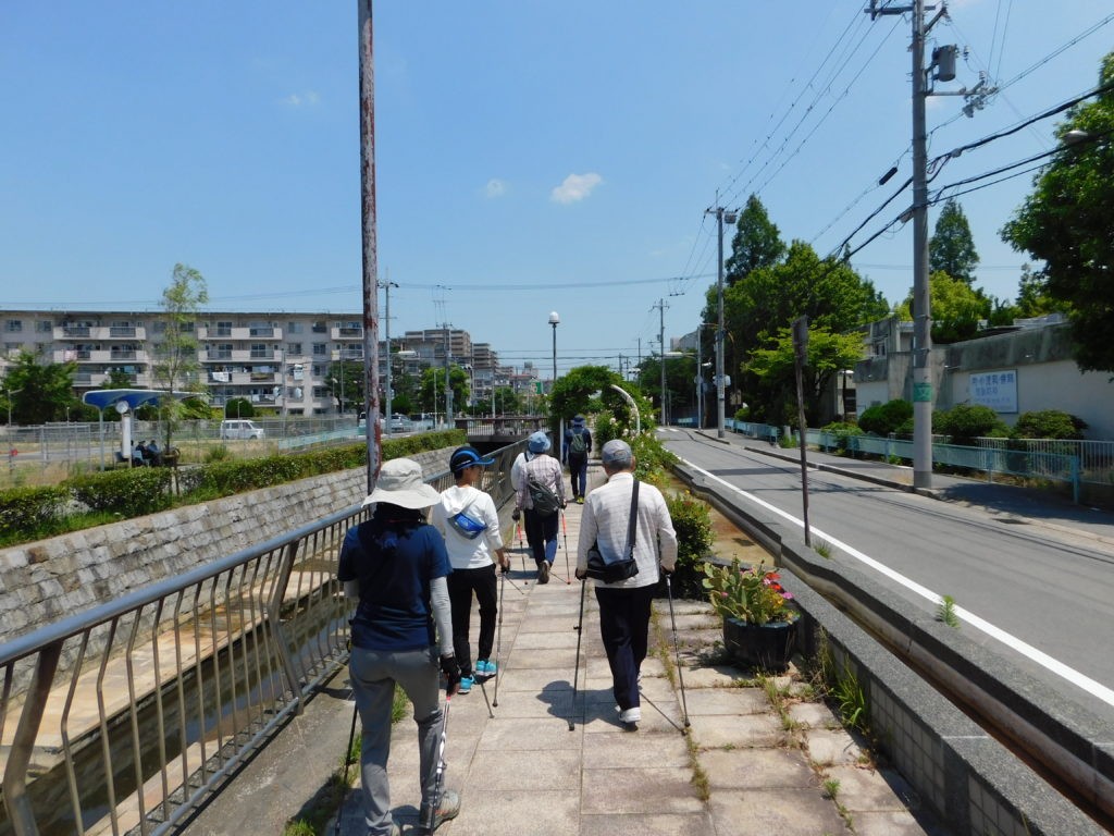 毎週月曜日10:00~11:00に開催されているノルディックウォーキング(現在猛暑のため休止中。9月より再開)。通称「はまこうあるこう会」。浜甲子園って、ウォーキングに最適な場所なんです。でも、みんな一人で歩いてる。それも良いけど、ウォーキング仲間がいたらもっと楽しいはず。いつからかみんな仲良くなって、ウォーキング後は一緒にお昼を食べたり、手芸をしたりする仲に。