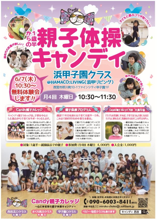 毎週木曜日10:30~11:30 Candy親子カレッジによる親子体操が開催されています。