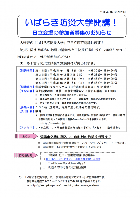 茨城県では、「防災士」の資格を取ることができる講座も開催されていて、