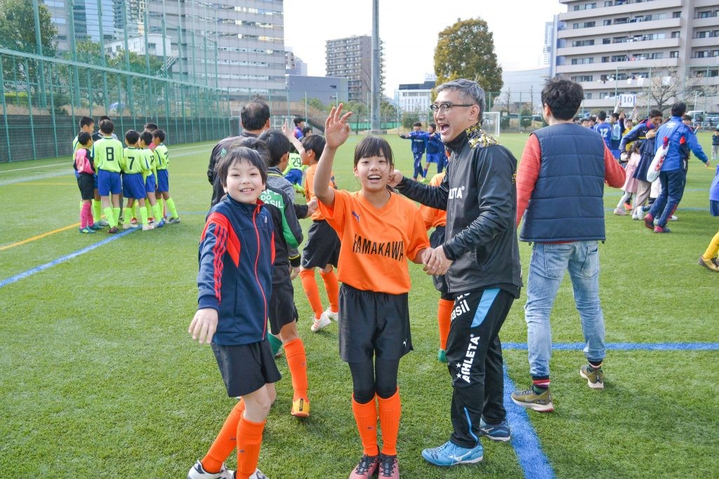 品川区内の少年少女サッカーチームと一緒に