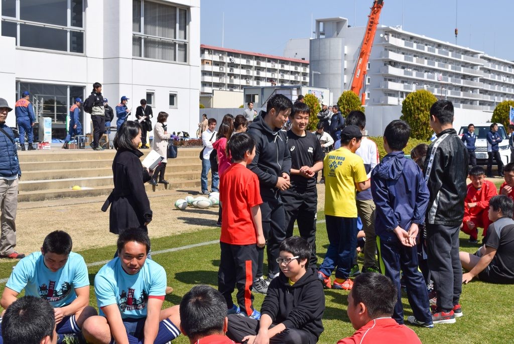 「ラグビーを通して、楽しく防災を学びましょう」という言葉が聞かれ、